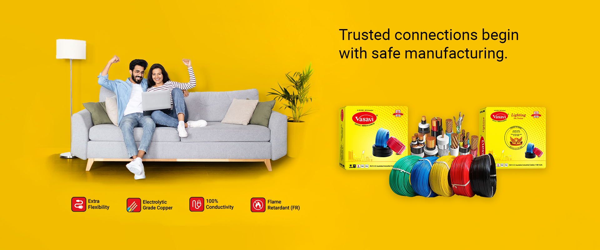 Vasavi Cables stands for quality, safety, and reliability. Manufactured using premium-grade raw materials and advanced technology, our cables undergo strict quality checks to ensure superior performance and long-lasting durability. Designed to meet industry standards, our products offer excellent conductivity, heat resistance, and protection, making them ideal for residential, commercial, and industrial applications.